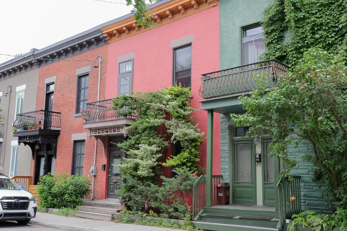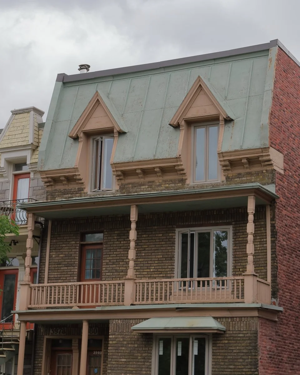 À partir des années 1880, le Plateau Mont-Royal prend véritablement forme à travers un tissu serré de rues orthogonales, bordées de duplex et de triplex typiques. Construites en brique, ces habitations ouvrières aux balcons de fer forgé et aux escaliers extérieurs en colimaçon témoignent d’un savoir-faire local, façonné par les maçons, menuisiers et forgerons de l’époque. Derrière les façades, la vie de cour, les ruelles animées et les logements étroits accueillent des familles francophones, mais aussi de nombreuses communautés immigrantes — notamment juives, grecques et portugaises — qui participent au dynamisme du quartier. Le Plateau devient un microcosme de Montréal : dense, populaire, créatif, avec une architecture domestique qui parle à la fois de modestie, d’ingéniosité et d’enracinement.