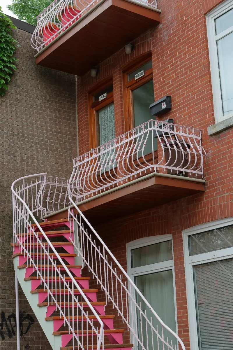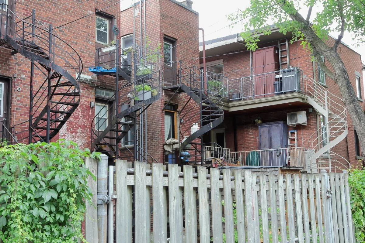 Dans les ruelles du Plateau, l’architecture se fait vivante : escaliers, plantes, clôtures et objets accumulés racontent la quotidienneté d’un Montréal habité, transformé, adapté.