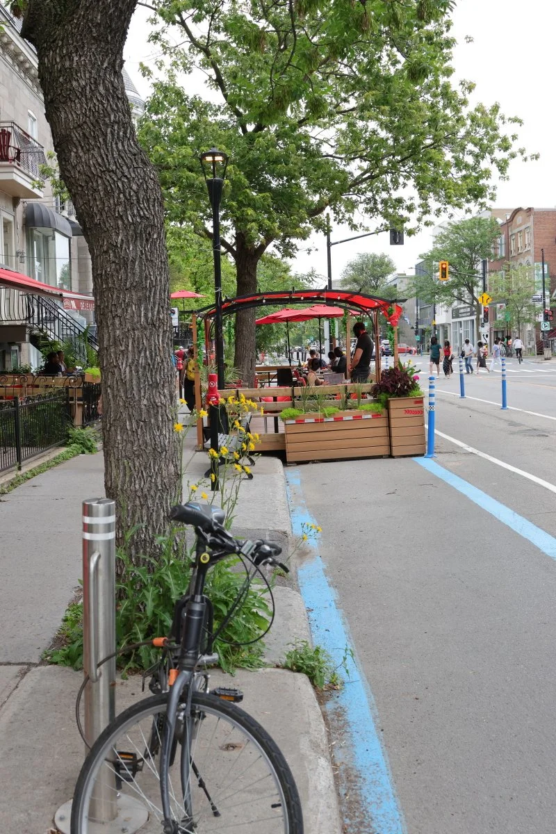 Terrasse fleurie sur la rue Saint-Denis. L’un des innombrables cafés du Plateau où la ville s’écoute, se regarde, se vit.