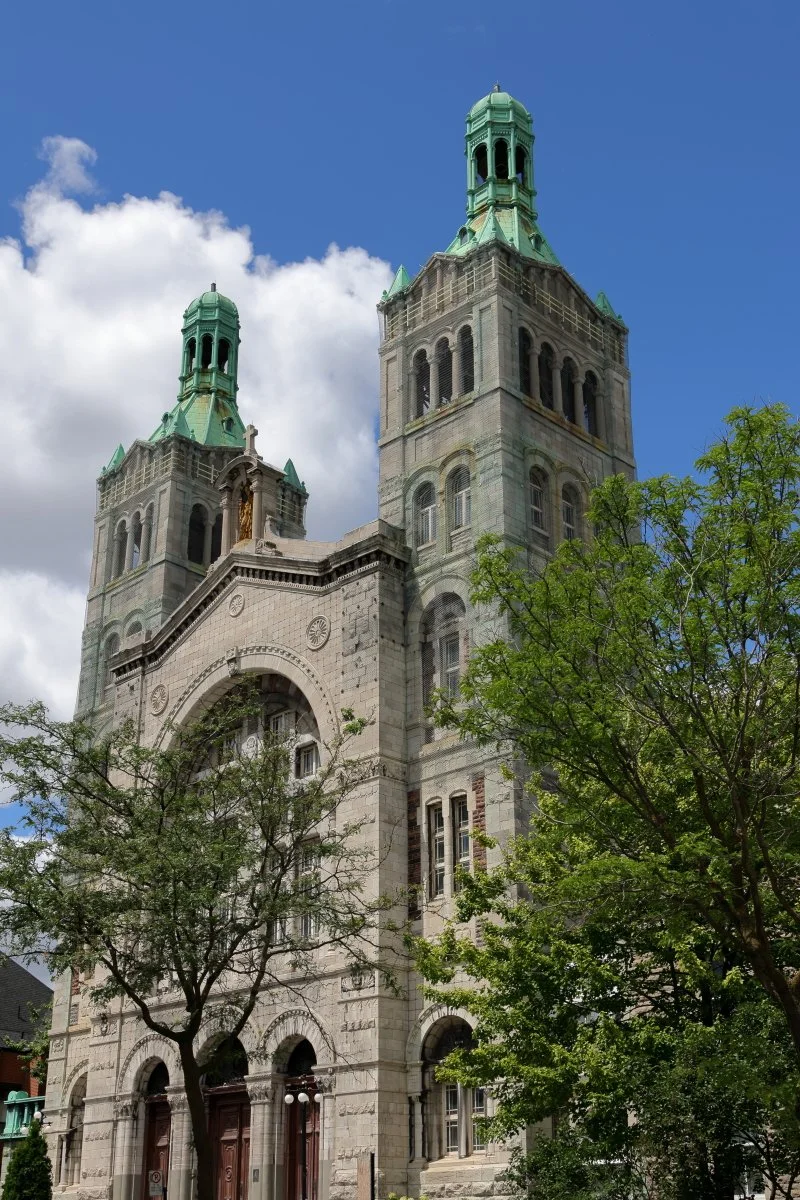L’église Saint-Charles, avec ses deux tours de pierre et ses clochers de cuivre, desservait la communauté francophone catholique de la Pointe. Monument de foi, elle incarne l’encadrement moral et spatial qui a façonné le quartier. Rue Centre, au coin de la rue Island